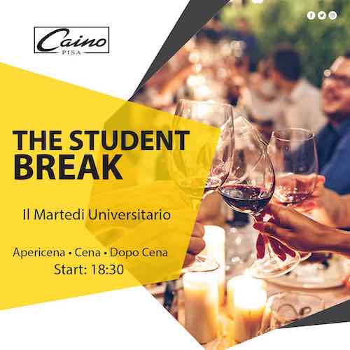 Per tutti quegli studenti universitari che già al martedì sera hanno bisogno di una pausa. Stai cercando cosa fare stasera a Pisa? Sei in cerca di un buon apericena che ti distragga dalla settimana ancora lunga nella vita di ateneo pisano? Caino Caffè ti aspetta a partire dalle 18.30 con Student Break.